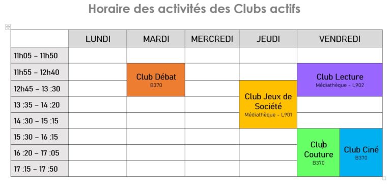 Les Clubs existent maintenant depuis quelques années. Un GRAND MERCI à tous les élèves qui jusqu’ici ont rejoint les Clubs pour une courte ou longue durée, durant leurs années au Lycée. Grâce à leurs participations, les Clubs ont la possibilités de faire des activités et de vivre de chouettes expériences, qui pourront être renouvelées d’année en année. Longue vie aux Clubs !